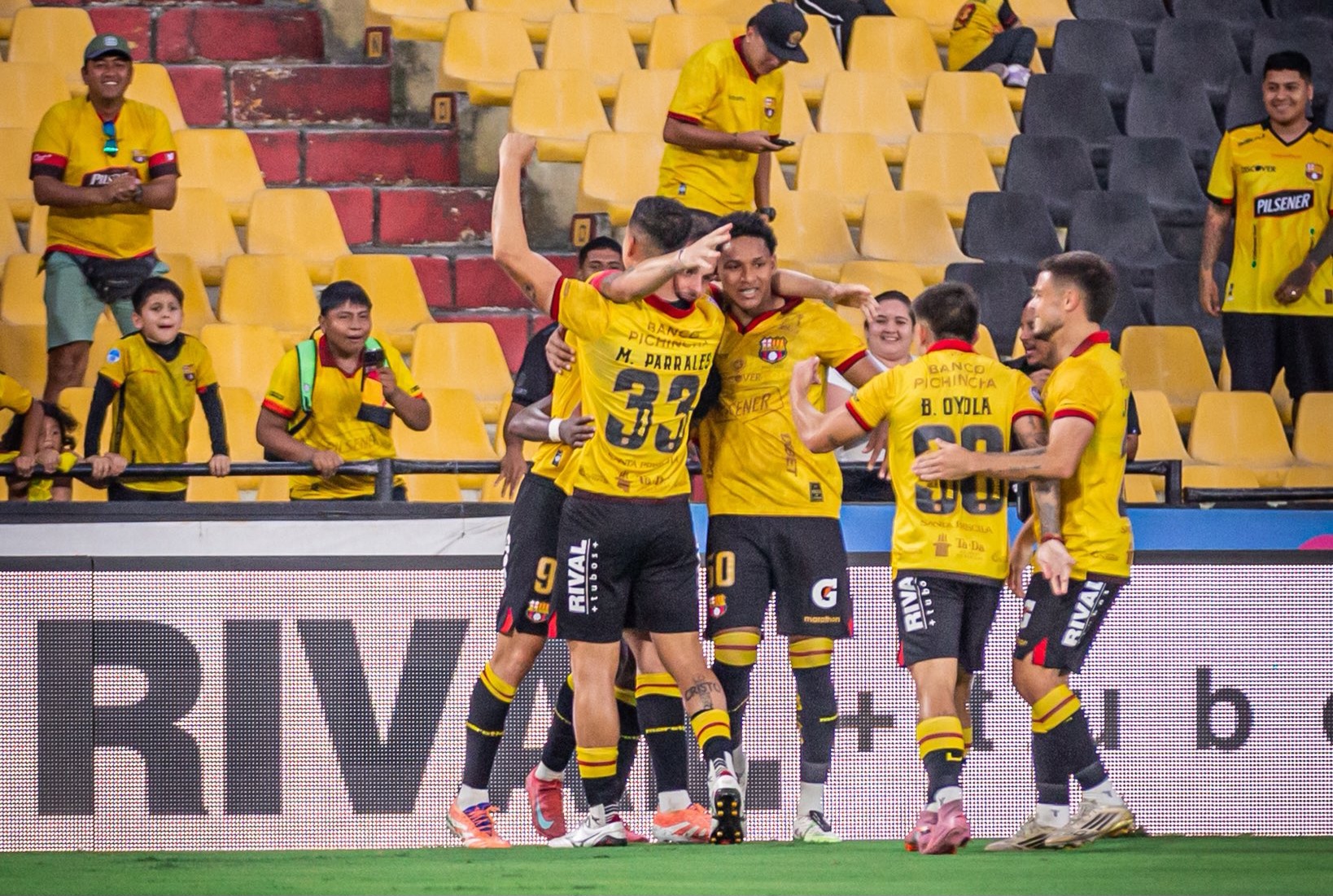 Cuando el partido parecía complicarse, Barcelona reaccionó de inmediato. Bryan Carabalí recibió un pase profundo por la banda derecha y envió un centro preciso al área, donde Octavio Rivero, con la rodilla, marcó su doblete y devolvió la ventaja al conjunto torero.