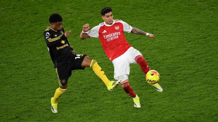 En la segunda mitad, el equipo dirigido por Michael Carrick dio un paso al frente y logró ponerse en ventaja a los 50 minutos gracias a un espectacular remate de Patrick Dorgu, que sorprendió al arquero rival y silenció el Emirates.